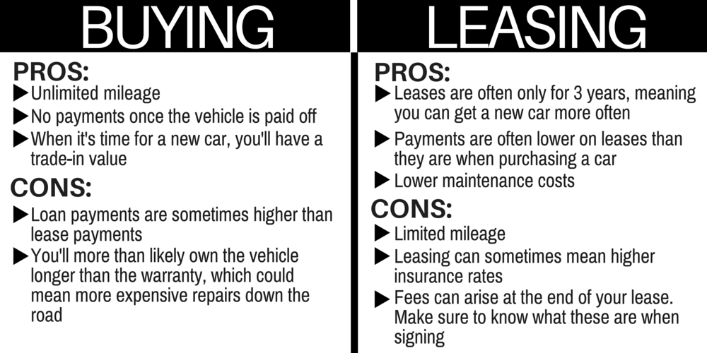 The decision to buy or lease a vehicle simply comes down to personal preference. Both have their advantages, but one choice is not necessarily better than the other.